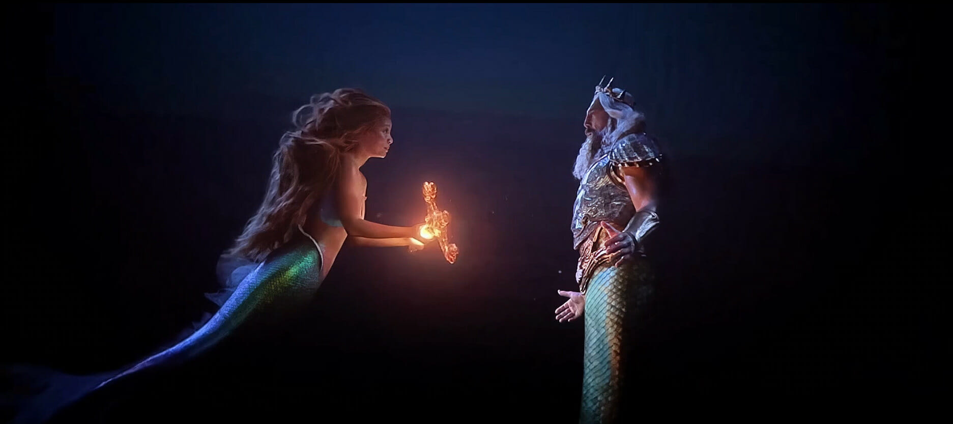 I also want to say that… dear costume designers, wow. I really want that tail. It is the most beautiful tail that I’ve ever seen. I want it. The movie is also much prettier and more colorful than ANY OF THE TRAILERS and media released beforehand showed. To be honest, I think Disney’s marketing team needs to be fired for this one. The movie is much more fun and enjoyable than ever could have been seen for the pre-release. Also, I think Disney made their own mistake by feeding into a lot of controversy with comments like “reimagining” Ariel for a modern world, because other than a few little word changes, they really didn’t. Which is a good thing. I think this movie would have done better—and got a better audience if they had just shut their mouths (actors included) and just shared a MUCH PRETTIER trailer, hell, clips from Under the Sea would have been good, like the jellyfish part which are so pretty. Instead, we got the ugliest media beforehand… and a bunch of snide remarks that people are only criticizing the movie due to controversy. The movie is actually so gorgeous… so either they edited more since the trailers, or whoever edited the trailers truly sucked and should be fired.